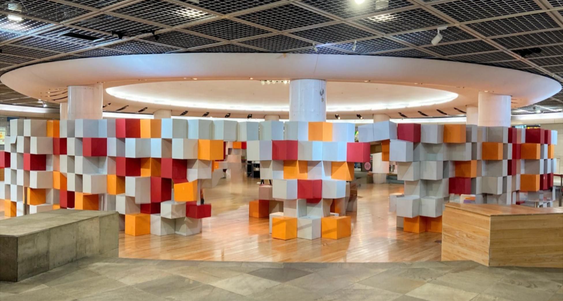 2023/10 広島市 パビリオン 展示会場を緩やかにつなぐ、既成ダンボール1000個を活用した組み立て式間仕切空間+展示什器 日本出版販売株式会社広島支店 Computational design